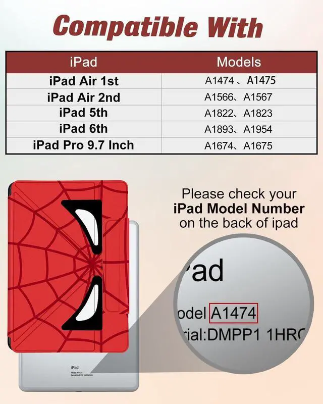 Compatible Model: Only for iPad 9.7 inch 6th/5th Generation 2018 2017, for iPad Air 1/2/Pro 9.7", not compatible with other devices, please check your model before ordering ^^