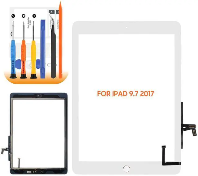 ^^ Strict Quality ControlThe touch screen digitizer replacement for iPad 9.7 5th 2017 will be 100% inspected by a professional QC team before delivery. We offer a lifetime exchange for non human damage, making your purchase risk-free. If there are any issues with the product, we sincerely recommend that you contact us for technical support and satisfactory solutions. ^^ Package include 1* for ipad 5th touch screen touch digitizera set of repair tools 1* Tempered Film for ipad 5th 2017 screen replacement. ^^ InstallationProduct does not include installation instructions. Please test for the ipad 5th generation screen replacement before installation to ensure the normal use of the screen replacement.