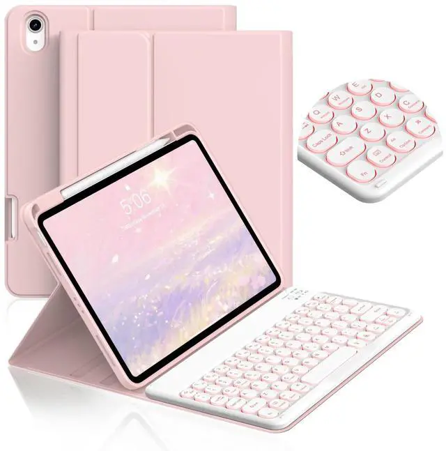 Model Number: A3266/A3267/A3270/A2902/A2903/A2904/A2588/A2589/A2591/A2316/A2324/A2325/A2072. ^^ Comfort-Typing + Easier Pen Holder25 Ergo-Hug circular keycaps wrap you in Cloud-Cushioned Press & Bounce as Cat's-paw. Side holder enables 1-tap pencil accesssmooth for long lectures or creative projects. Perfect for iPad Air 11-inch M3/M2 users whose hands stay fresh and work flows better. ^^ Glow-Comfort Backlit7-color backlit with 3-step dimming (30%/60%/100%) eases eye strain. Enhanced by a dynamic breathing lightflowing gently as you type. This smart combo is ideal for iPad Air 10.9" 4th/5th Gen users working late or studying in dim light. Gentle light, happier eyes.