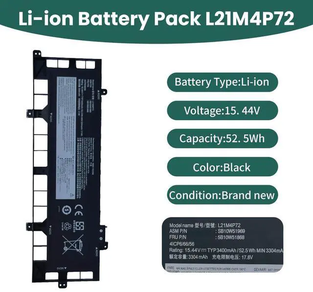 Li-ionModel: L21M4P72Voltage 11.44VC apacity 52.5W h 3400mAhReplace