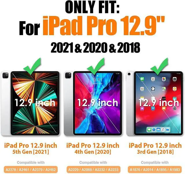 Gen 2018 (Models: A1876/ A2014/ A1895/ A1983). Not Compatible with iPad Pro 12.9 inch 2015/2017 or any other iPad models. ^^ Built-in Screen Protector and