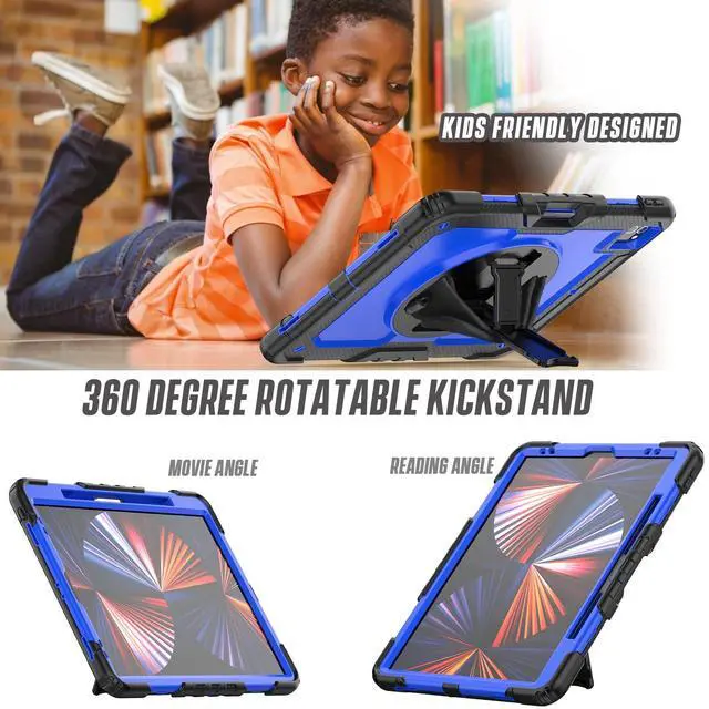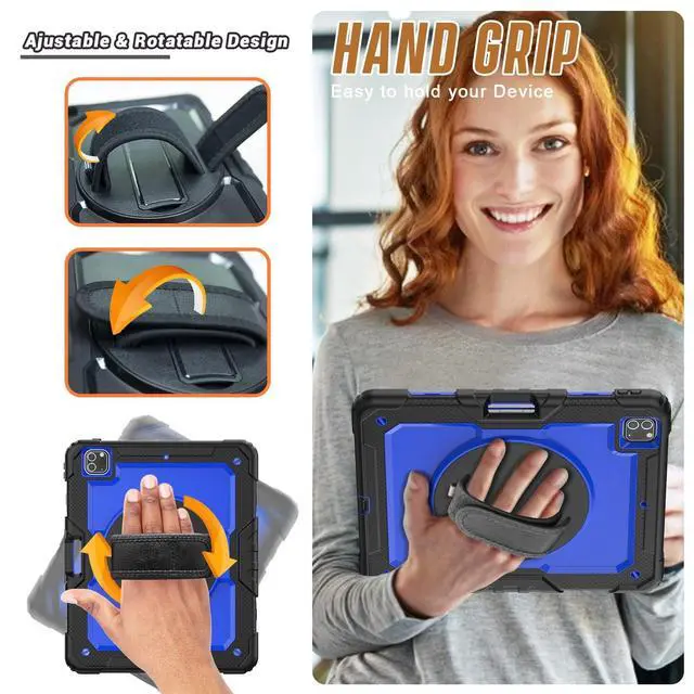 Hand Strap: 360-degree rotating swivel stand supports position of 3 angles(Vertical, Horizontal, and Halfway between), ideal for watching videos, conferences and travelling. Soft rotating handle strap prevents falling of ipad pro 12.9 tablet, featuring convenient use for teachers, students, waiters, doctors, nurses and conference presenters.