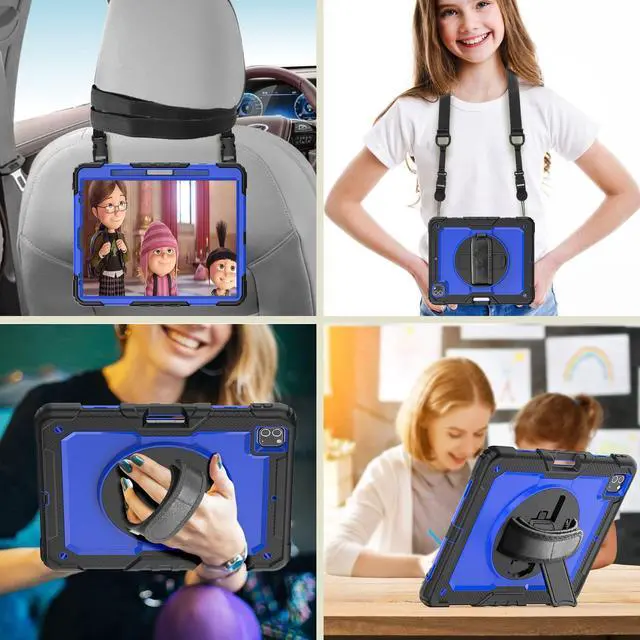 ^^ Adjustable Shoulder Strap: Adjustable shoulder grip can be slanted and release your hands completely. This function is perfect for traveling, restaurant ordering, home product introduction, engineer outdoor operation, teacher, etc. Also, the strap allows you to hang up your tablet behind car seat for entertainment for kids.