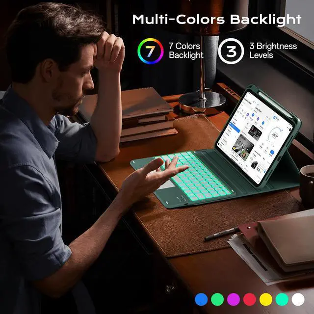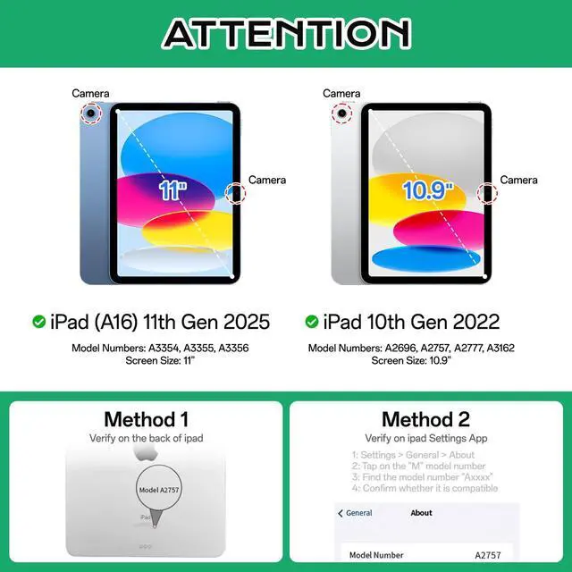Note: Please check your model before purchase, find the model number (AXXXX) on the bottom of the back of iPad. If the size is not suitable, please contact us, we will solve the problem for you. ^^ 7 Colors Adjustable Backlit & Touchpad KeyboardTaking into account typing in dark environments, JKSML iPad (A16) 11th gen/ iPad 10th gen backlit bluetooth keyboard is specially designed with 7 backlight colors and 3 levels of adjustable brightness. It also has a mode for automatically switching light colors and a single color constant light mode. The clever touchpad design allows you no longer to rely on the mouse. Swipe or tap with your finger. ^^ Right Side Pencil Holder & 3 Adjustable AnglesJKSML 11" iPad 11th Generation (A16) 2025 Case and 10.9" iPad 10th Generation Case has a built-in pencil holder on the right side to storge the Apple Pencil (Not included), it is easy to put in and take out the pencil. This keyboard case provides 3 angles of use (120/125/130), which is easy to adjust. You can choose the most comfortable angle for typing, viewing, reading, sketching and so on.