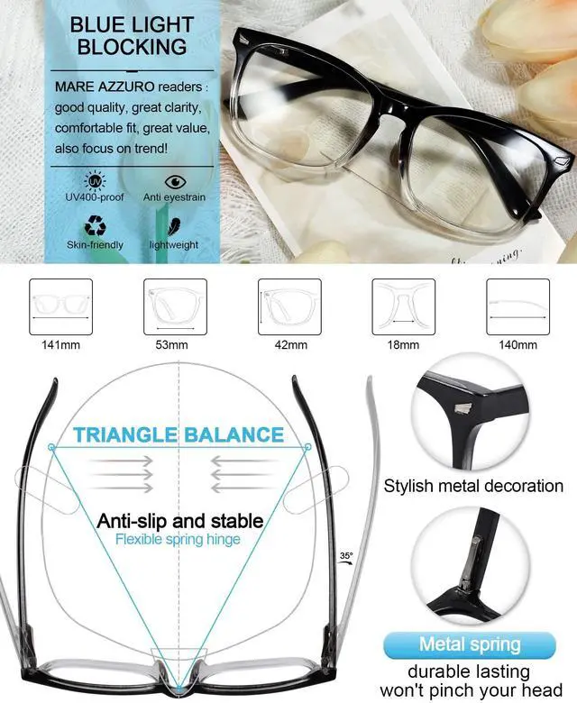 The ladies blue light blocking reading glasses 1.25 with funky square design is suitable for all face shape and makeup, and against the high energy blue light from digital screens (computer, phone, pad, TV, LED, etc. ). Designer readers with exquisite gifts, also has + 1.00 to + 6.00 accurate magnification to meet your daily needs. ^^