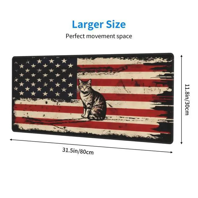 CANFLASHION American Flag Mouse Pad,Office Desk Mat 31.5"11.8",Large Gaming Mouse Pad with Cat Design, XL Extended Waterproof Desk Pad for Computer with Non-Slip Rubber Base300 * 800 * 3mm