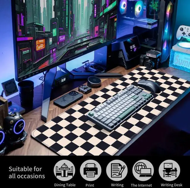 Durable, Precision-Engineered SurfaceCrafted with a fine-textured fabric, this computer mouse pad offers the ideal balance between smooth glide and superior control. Its specifically designed to enhance mouse tracking, providing exceptional precision for both optical and laser sensors. Whether youre gaming or working, the surface ensures your movements are reflected with remarkable accuracy, making it a great choice for anyone seeking a desk mat for desktop use. Plus, the material is highly durable, reducing wear over time and preventing the common fraying issues seen with lower-quality mouse pads. Non-Slip Base for Stability and ProtectionNo more worrying about your mouse pad shifting mid-game! This large mouse pad features a soft, dense non-slip rubber base that keeps the desk pad securely in place.