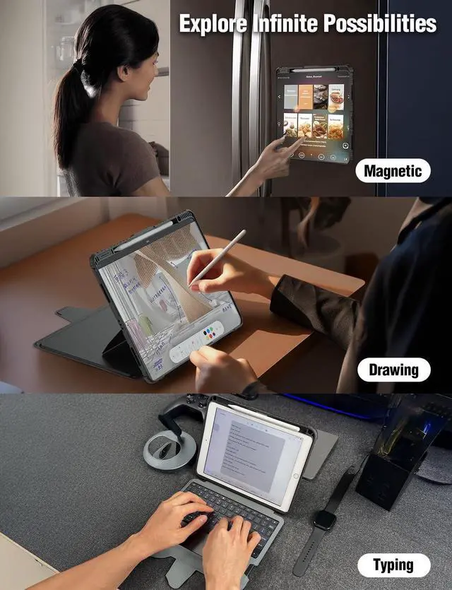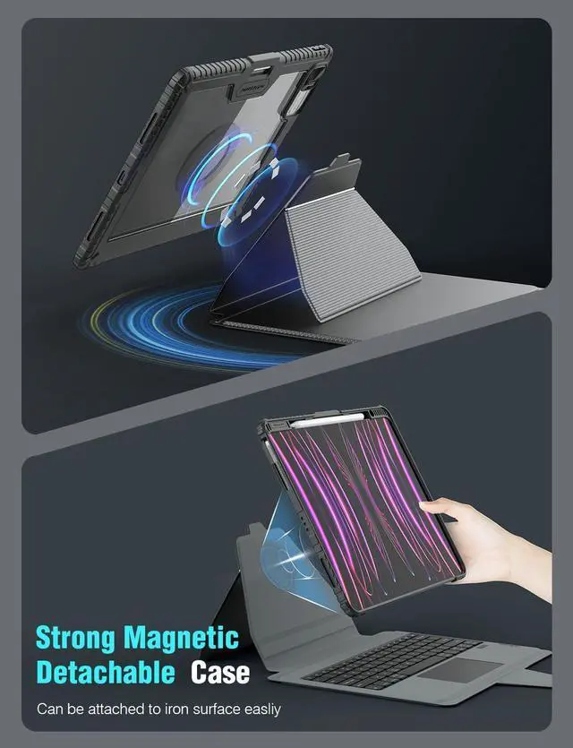 M4/M5: Nillkin ipad pro 13 inch case with keyboard features a smooth and easy typing experience, detachable magnetic stand, sliding camera cover, 7 colors keyboard backlit, multi-fuc magic keyboard, large capacity battery, anti mis-touch technology, a row of shortcut keys, back and front and 4 corners protection. More surprise wait you to explore. ^^ GREAT TYPING EXPERIENCEWith high precision measuring for each keys, you can press the keys of ipad pro 13 inch m5 case 2024 accurately, comfortably, easily and quietly; With magic keyboard touch gestures, this ipad pro 13 inch keyboard can capture every gesture sensitively, drag and drop files more smoothly; Our self-developed anti misoperation technology automatically disables the touchpad when typing; A row of shortcut keys design, easy to access to common functions. All details design just for offering you better typing experiecxe with our ipad pro 13 inch m4 keyboard case. ^^ MAGNETIC AND DETACHABLEBuilt-in a strong magnetic ring and adjustable stand with Nillkin ipad pro case 13 inch, only 1 second from tablet to laptop mode. Once detached from the keyboard, it will be a separate magnetic case - which can be attached to any iron surface, like refrigerator.