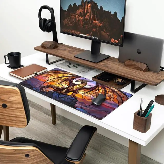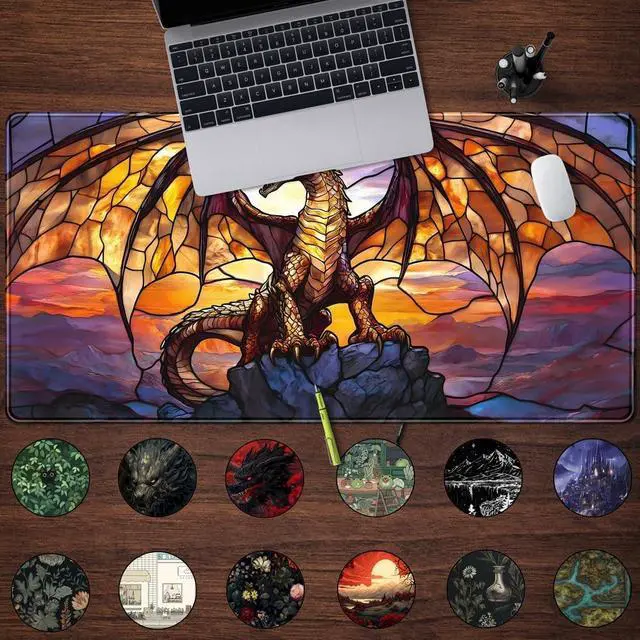 Dragon Desk Mat Large Mouse Pad XXL Extended Gaming, Gamer Gift Play Mat Desk Mousepad with Stitched Edges, Keyboard Mouse Mat for Work Game Office 31.5x15.7 in-Gift for Boyfriend or Son