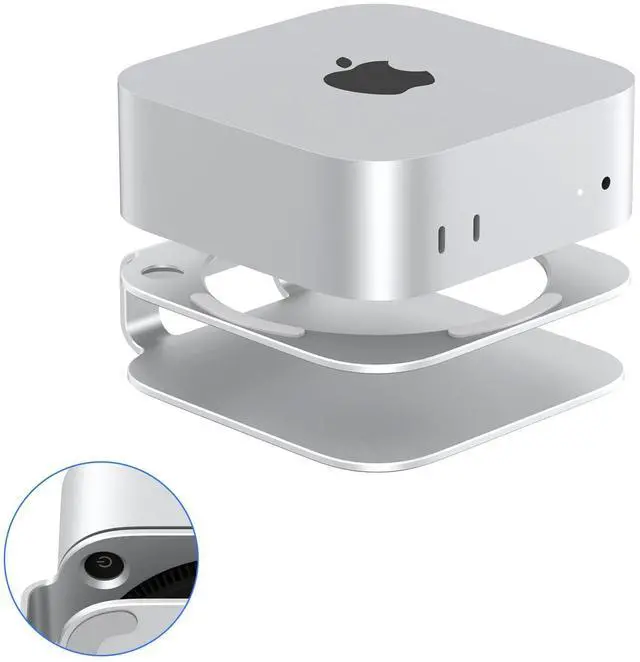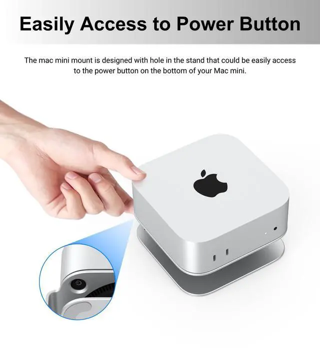 Power Button: The mac mini mount is designed with leaving a small hole in the stand that could be easily access to the power button on the bottom of your Mac mini.