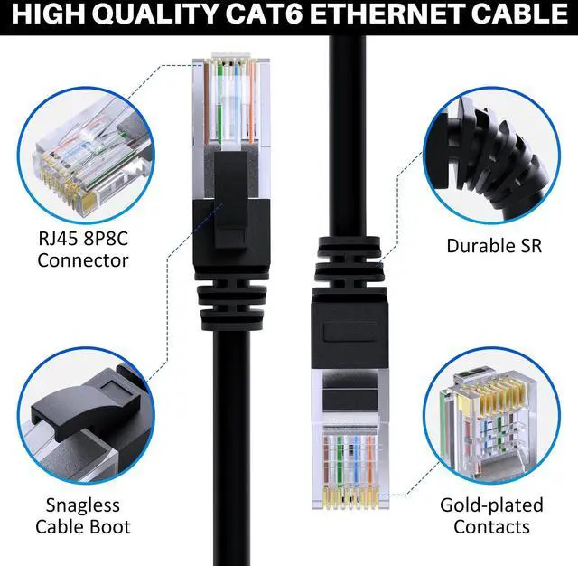 High Speed Cat 6 Ethernet CableLag-free data transfer speeds of up to 1.0G pbs. Bandwidth of up to 550MHz. Premium Materials4 twisted pairs of solid CCA copper clad conductors. Gold-plated RJ45 connectors. CM grade PVC jacket complies with TIA/EIA 568-C. 2.