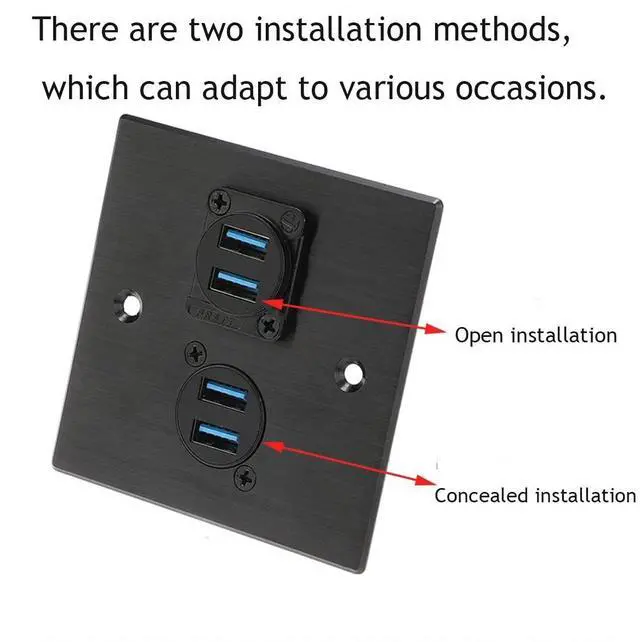 independent channels work without affecting each other. ^^ WIDELY APPLICATIONConnects equipment with USB ports like a PC, Mac, desktop, laptop, notebook, media player, USB external hard drive, AV receiver or other equipment with USB ports with the cables concealed behind the wall via wall plates. ^^ DURABLE QUALITYZinc alloy material, scratch resistance, flame retardant, UV resistant, and anti-aging.