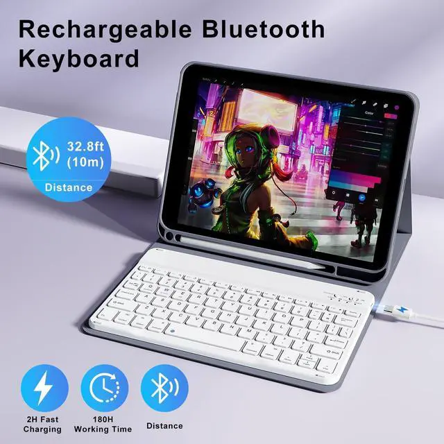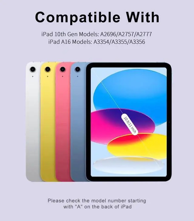 Note: Not be compatible with any other model of iPad. Before purchasing, please check the model number "AXXXX" on the bottom of the back of the iPad to confirm if the size of the iPad is correct ^^ Detachable Bluetooth KeyboardThis iPad 11th/10th gen case with keyboard supports bluetooth connection to your iPad 11th/10th generation without the need for extra cable devices, providing you with ultimate convenience. The iPad 11/10 case keyboard has a quiet and smooth touch, providing you with a comfortable typing experience. Improve productivity while browsing web pages, editing documents, transferring videos, and more, turning your 11 inch/ 10.9 inch iPad into a laptop in seconds ^^ Powerful Battery and Auto Wake SleepThe iPad case 11th/10th generations keyboard is equipped with a powerful battery, energy-saving mode, and only takes 2-3 hours to fully charge. When you open or close this 11inch/ 10.9 inch iPad case 11th/10th generation, it will automatically wake up or hibernate the iPad, which helps to extend the battery life of the iPad ^^ High Quality Shell and Precise Cutting DesignOur iPad 11th (A16) generation/ 10th generation case with keyboard features a high-quality PU leather outer shell and a soft ultra-fine fiber lining inside, full protect your iPad 11th/10th generation from various drops.