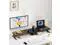 Monitors: This dual monitor stand is perfect for when you need to work with multiple computers. Its unique design features a sturdy black construction with a rustic brown wood finish for a stylish look.