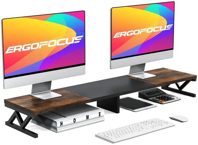 ^^ Large Storage Space: The dual monitor stand riser has extra space for keyboard, sticky notes, mouse, DVD players, iPad and other office supplies. Extra storage space underneath organizes various accessories.