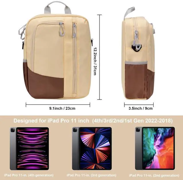 Exterior size: 31x23x9 cm / 12.2 x 9.1 x 3.5 Inch; Lightweight & compact, not a burden for EDC but big enough to hold your daily essentials ^^ Main compartment for tablet up to 11 inch, 2 inner pockets to conceal small items ^^ Front 2 zip pockets for your daily stuffs or digital accessory ^^ Detachable shoulder strap for convenient carrying experience, free your hands