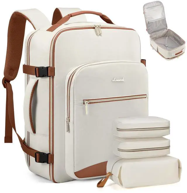LOVEVOOK Travel Backpack for Women & Men 50L,Airline Approved Carry On Backpack Travel Essentials,TSA Carry on Luggage,Waterproof Personal Item Travel Bag,Suitcase with 3 Packing Cubes, Beige-Brown