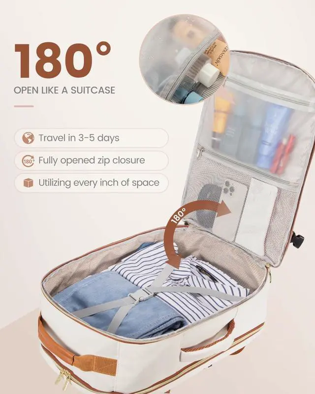 As Personal Item Airline Approved: The size of the carry on backpack is 18*14*8inch. Meets the maximum size allowed by most International Air Transport Association (IATA) flights, and can be placed in the overhead luggage compartment and under seat luggage for airlines, suitable for Spirit, Frontier, Easy Jet, Jet Blue, and other airlines. This travel backpack for women airline approved can be freely opened 90-180 degrees easily and quickly at the airport security check. ^^ With 3