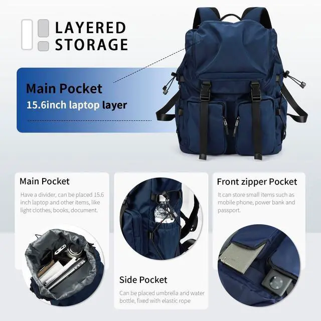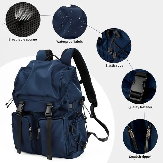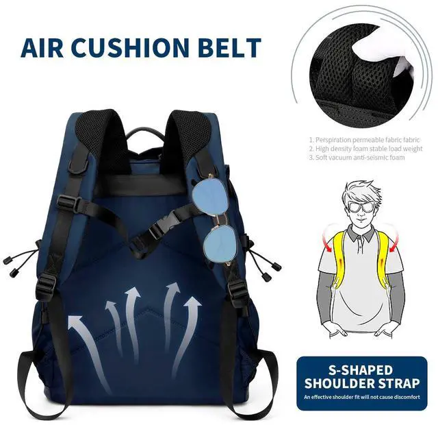 ^^ Multi-functional: This is a very well designed and constructed commuter backpack with multiple excellent features. Good padding on the straps that gives you support and airflow. SBS metal zipper is strong and of good quality and also moves very smoothly, doesn't experience any jamming or sticking. In addition, there are waterproof design, drawstring design, shoulder strap non-slip buckle design.