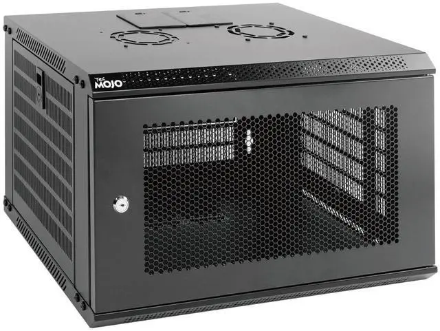 Security: one-built-in top fanwith power cable) and flow through mesh doors to prevent overheating of the network rack ^^
