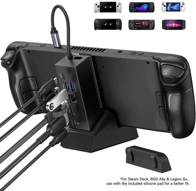 Modular Docking Station: The JSAUX docking station provides dual functionality. Use it with the gaming console directly on the dock, or detach the base for standalone use as a stand, offering flexibility for both desktop and portable setups. The extra silicone pad ensures a perfect fit, enhances stability, prevents slipping, and improves support angles for a better gaming experience ^^