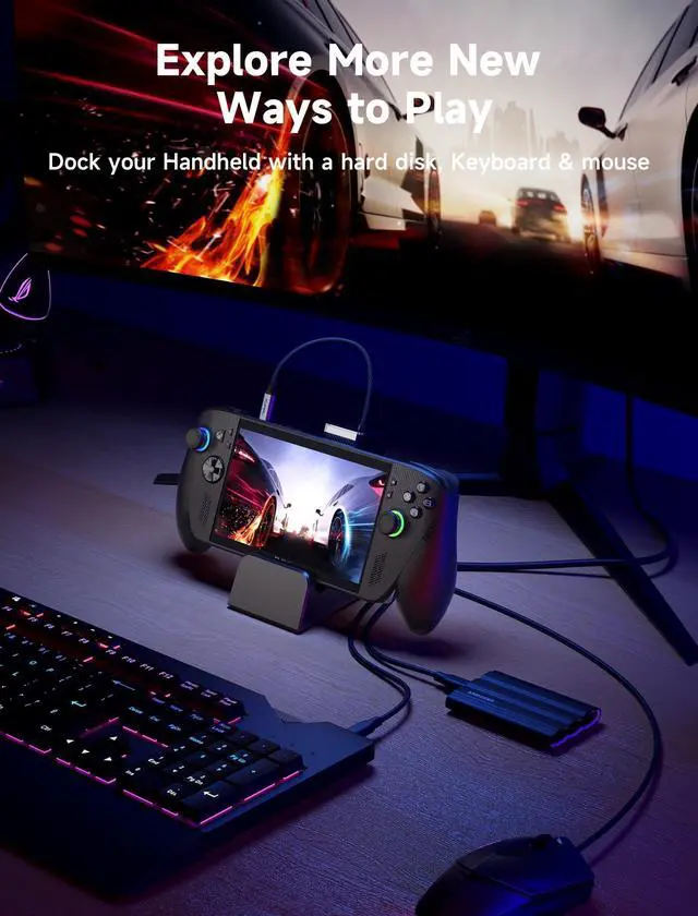 Handheld: Experience enhanced gaming with 4K@120Hz HDMI output, Gigabit Ethernet, USB C PD charging, USB C 3.2 Gen 1, and dual USB A 3.2 Gen 1 ports. Enjoy crisp 4K@120Hz or 1080@240Hz HDMI output for vivid gaming visuals ^^
