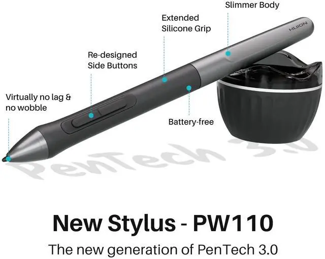 Ergonomics Pen Design: The new digital stylus PW110 is improved designed with slimmer body, soft silicone grip & accessible side buttons for better ergonomics & comfort ^^ Programmable Scroll & 3-Set