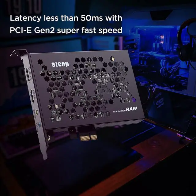 4K HDMI Video CaptureThe card captures 4K resolution video and audio via HDMI, providing high-quality video and audio recording and streaming capabilities ^^ Internal PCI-Express DesignThe internal PCI-Express design allows for easy installation and saves valuable space in your computer case ^^ Live Streaming and Sound MixingThe card features a line-in audio input and a dedicated audio output, enabling you to mix sound from different sources for a more professional-quality live stream ^^ PC Gaming Optimization The card is optimized for PC gaming, providing smooth, low-latency video and audio capture for an enhanced gaming experience ^^ Cross-Platform CompatibilityThe Ezcap324B PCI Capture Card is compatible with Windows 10, Mac OS, PS4, Xbox, and Switch, making it a versatile choice for a wide range of uses