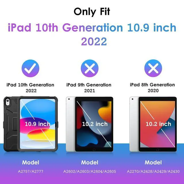 CompatibilityExclusively Designed for Apple iPad 10th Generation Case 10.9 inch 2022. Not compatible with any other devices. ^^ Multi-AngleSupport multiple angles of use, typing Angle and reading Angle, to meet your daily needs. ^^ Drop ProtectionShock-resistant, Dual layer case with solid polycarbonate backplate provides protection against accidental drops, bumps and impact. ^^ Other FeatureSupport touch ID for your iPad 10th generation 2022. Slim tri-fold stand case also support auto-wake/sleep function. ^^ Lifetime Warranty DTTO Offers Lifetime Free Replacement for Your iPad 10th Generation 10.9 inch case (Needs to be activated within 30 days of purchasing).