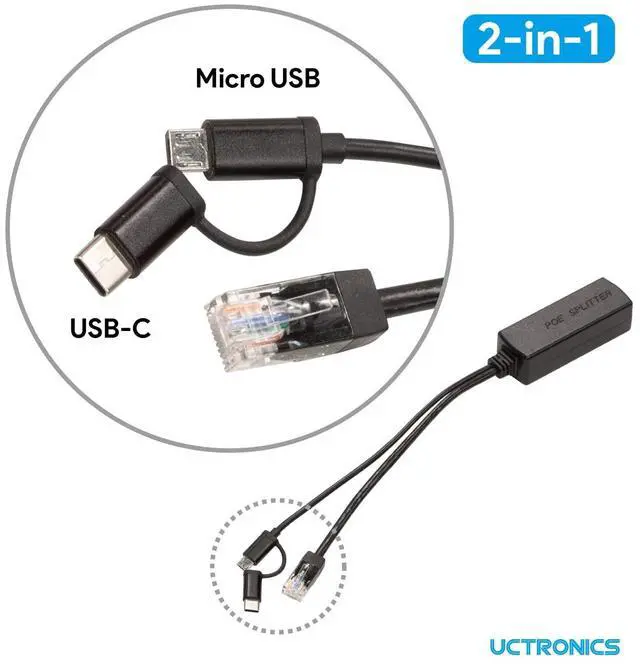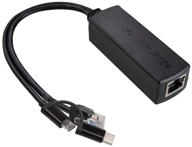 2-in-1 portA Micro USB to USB-C adapter is added on the PoE Splitter to make it a 2-in-1 PoE Splitter, making PoE to Micro USB and USB C devices more easily accessible. ^^ Gigabit IEEE 802.3 af/at CompliantPower over Ethernet IEEE 802.3 af/at compliant; 10/100/1000 Mbps RJ45 ports; 5V 3A power supply; with overvoltage protection, short-circuit protection and overcurrent protection. ^^ Power Supply & Data TransmissionIt supplies power and transfers data between PoE switch/ PoE injector and non-PoE device meanwhile via one single ethernet cable to PoE devices, expanding network to anywhere you need network devices but no power lines or outlets.