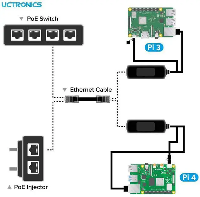 ^^ Plug & Play Just plug the adapter on the PoE splitter into the Micro USB port, then the Micro USB port is changed to be a USB-C port. Set up easily, switch freely, and transfer stably. ^^ Wide CompatibilityThe Gigabit PoE splitter is compatible with raspberry pi 4B+/4B/3B+/3B, Security IP Cameras, Tablets, Smart Home Devices, IP phones, wireless APs and other non-POE devices ^^ Non-Standard PoE Risk This splitter requires IEEE 802.3 af/at PoE. Non-standard (passive) PoE switches deliver power without negotiation, which can Overvolt and damage connected devices