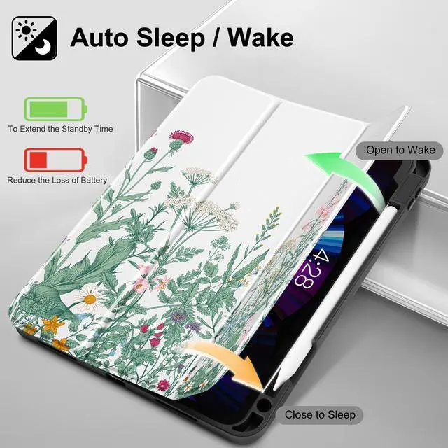 May Chen Case for iPad Pro 11 inch (4th, 3rd, 2nd & 1st Gen) 2022 2021 2020 2018,Trifold Stand with Auto Wake/Sleep Soft TPU Protective Stand Back Cover, Herbs Flowers