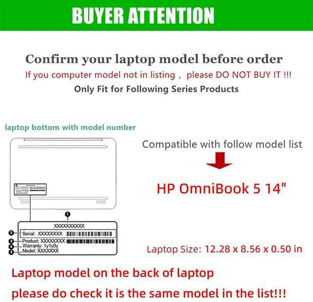 Dimensions: Case size (L X D X H):12.28 x 8.56 x 0.5 inches. This case is Only for HP OmniBook 5 14" 2025(Please check your laptop model!!!)