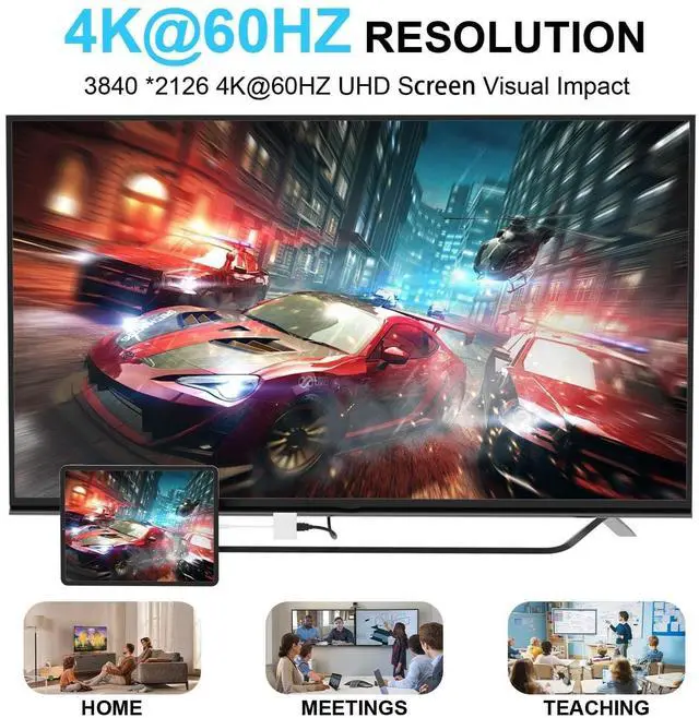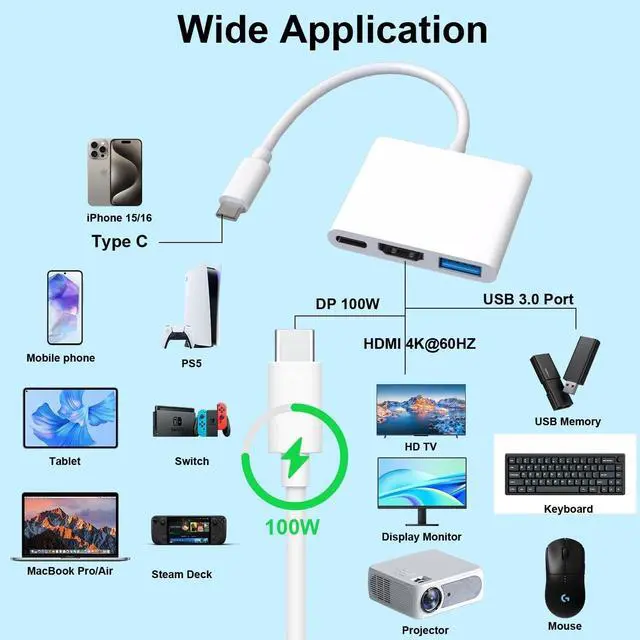 USB-C to 4K@60Hz HDMI Adapter, Digital AV HDMI Multiport ConverterMirrors or expands high-resolution graphics images/videos Max 4K (3840x2160) @ 60Hz to HDTV, monitors or projectors. It is ideal for screen sharing or extension, games and video streaming. -Compatible with Apple iPhone 16/ 16e/ 16 Pro/ 16 Plus/ 16 Pro Max, iPhone 15/ 15 Pro/ 15 Plus/ 15 Pro Max, MacBook Pro 2016 - 2025 / Air 2018-2025, iPad Pro 2018 - 2025, iPad Air 4/5/6/7, iPad mini 6/7-