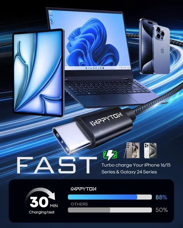 WHAT YOU GET: 1 pack INPPYTON usb type c cable 60ft, along with excellent customer support!