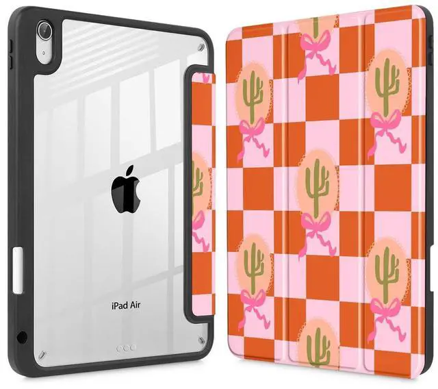 ICEKEE for iPad Air 11 Inch Case 7th/6th Gen (M3/M2) 2025/2024, for iPad Air 5th/4th Gen Case 10.9 Inch 2022/2020, Slim Stand Protective Cover with Hard Clear Back Shell Cover, Cactus Bows