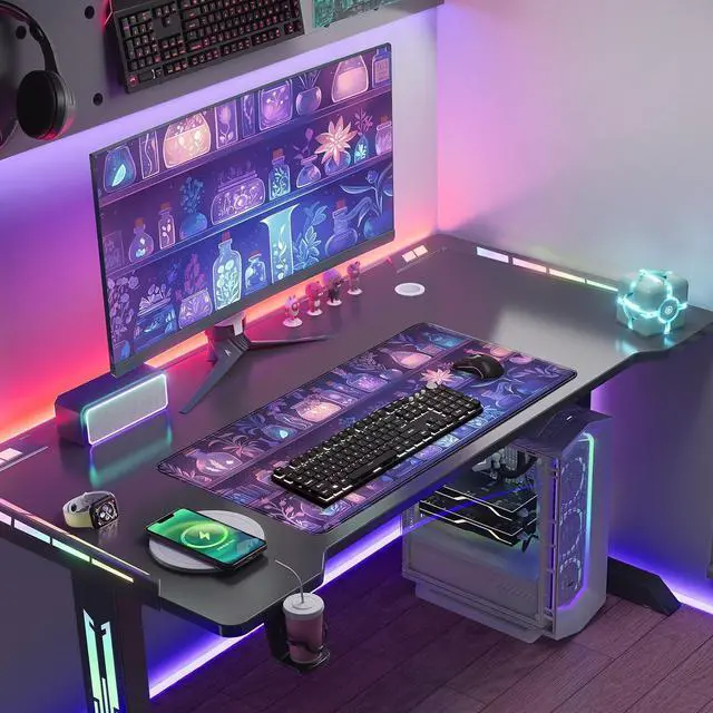 Witchy Purple Pink Blue Glowing Herbs Desk Mat,Enchanted Botanical Plants Shelf Large Mouse Pad- XL Mystical Desk Pad for Gaming, Office, Dorm-Fantasy Aesthetic Gift- Magic Home Decor 31.5" x 15.7"