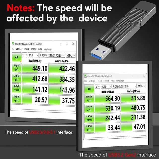 ^^ WIDE COMPATIBILITY: The USB 3.2 thumb drive 512GB SSD is compatible with a wide range of devices with a USB-A or USB/Type-C interface. Compatible with iPhone 15/16 series, Type-C smartphones, computers, laptops, tablets, car audio systems, or printers. It's backward-compatible with USB 3.0 and 2.0 ports, with exFAT by default. ^^