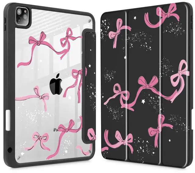 Tuiklol Case for iPad Pro 12.9 Inch M2 Case 2022 2021 2020 2018 Generation 6th/5th/4th/3rd,Built-in Pencil 2nd Holder Clear Transparent Protective Back Shell Cover,Bow-Black