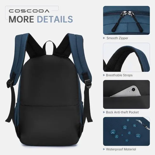 Waterproof: COSCOOA lightweight travel backpack is made of tear-resistant and water-repellent smooth 800D nylon fabric and high-quality metal zipper, sturdy and sturdy. Easy to clean and dry. It is very light and also large enough to carry all your travel necessities with multiple pockets for clothes, books, water bottles, cell phones and much more. Super light at 0.4 kg, easy to carry. ^^ Widely UsedThis airplane carry-on backpack is perfect to be used as a work backpack, weekend backpack, travel backpack, laptop backpack, gym backpack, personal item backpack, college backpack. Super lightweight, practical, durable for daily life when traveling outside as a carry-on luggage. Great Easter gifts for men/women for birthdays, anniversaries and other festivals for parents, friends and lovers