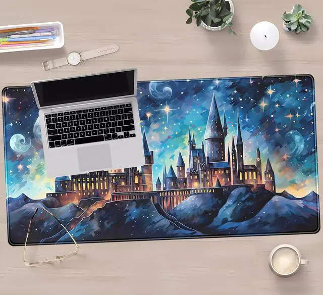 Blue Castle Desk Mat Aesthetic Cute Desk Pad, Extended Large Mouse Pad XXL Gaming Keyboard Pad, Computer Desktop Mouse Mat Full Desk Laptop Mat, Fantasy Art Office Desk Accessories 31.5" x 15.7"