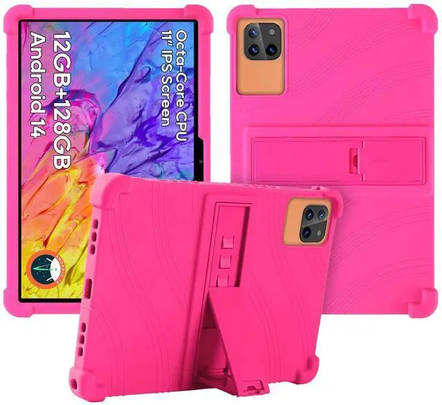Protect your Tablet 11-inch tablet with this premium soft silicone case, designed for maximum durability and ease of use. Ideal for kids, the case features a non-toxic, eco-friendly material that provides a smooth and secure grip. The reinforced 4-corner shockproof design absorbs impacts, offering excellent protection against drops and bumps. An integrated adjustable stand allows for hands-free viewing, perfect for watching videos, playing games, or video chatting. Precision cutouts ensure full access to all buttons, ports, and cameras without removing the case, while its lightweight design keeps your tablet easy to handle.