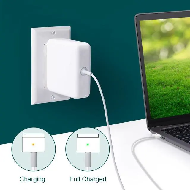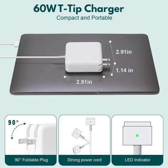 ^^ Safety Guarantee: This 60W T-Tip power adapter is designed to charge your Mac Book Air quickly and efficiently and is CE/UL certified. The charger is made of flame-retardant materials and has a built-in smart chip that ensures safe charging while providing overload, overcurrent, overcharge, overvoltage and short-circuit protection for your device.