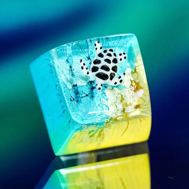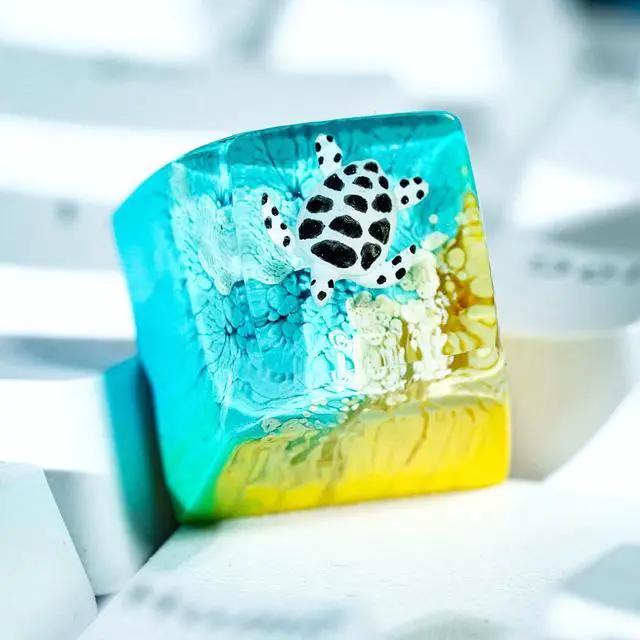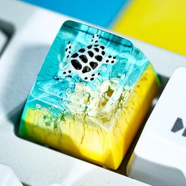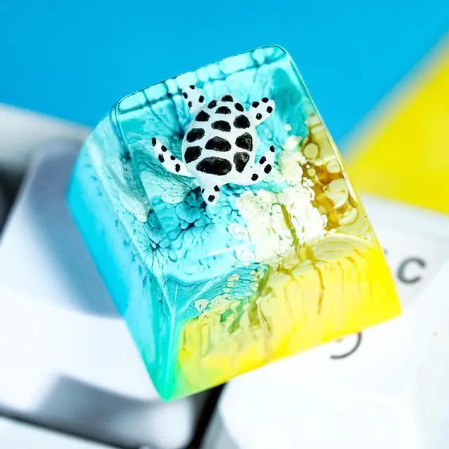 Sea Turtle Artisan Keycap Yellow and Light Blue Ocean R1 SA Profile Custom Sea Creatures Keycaps 1U ESC Handmade Gaming Resin Key Cap Cherry MX Switch Compatible Mechanical Keyboard Turtle Lover Gift