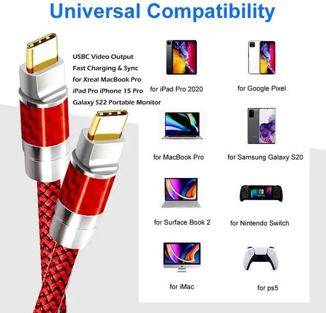 Note: As for the video feature, make sure your device hasa USB C port that supports DP Alt mode 40Gbps data transfer, 2x faster than 20Gbps. 240W PD charging, faster than 100WBroadcompatibility Type-C cables are compatible with almost all USB-C devices, including phones, tablets, and laptops Compatible with iPhone 15/16/17/, 15/16/17 Pro, 15 /16/17Plus, 15/16/17 Pro Max, MacBookPro Air iPad Pro/Mini/AirDell XPS/Inspiron/Latitude ThinkPadSamsung Galaxy Tab S8/S8 Plus, Samsung Galaxy S23/S22/S21, etc