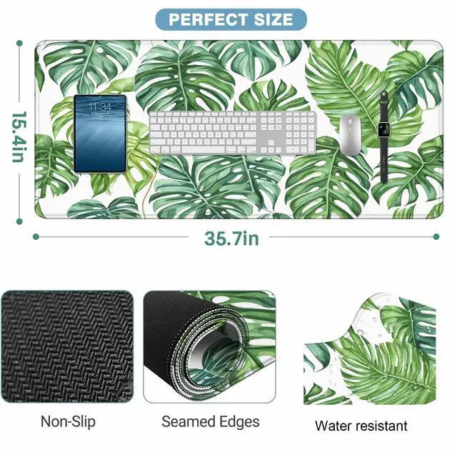 Y YIHANGBEST Tropical Monstera Leaves Desk Mouse Pad Mat Greenery Plant Art Botanical Extended Gaming Keyboard Mousepad for Computer,Home,Office 35.4"X15.7"