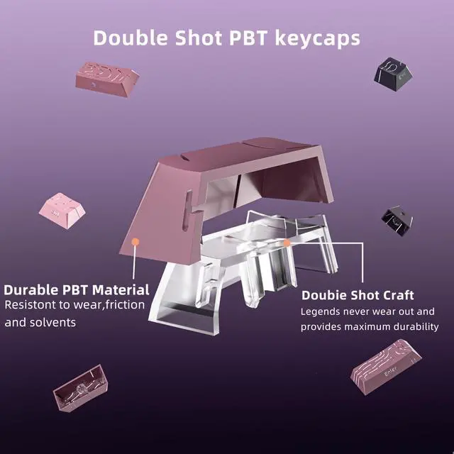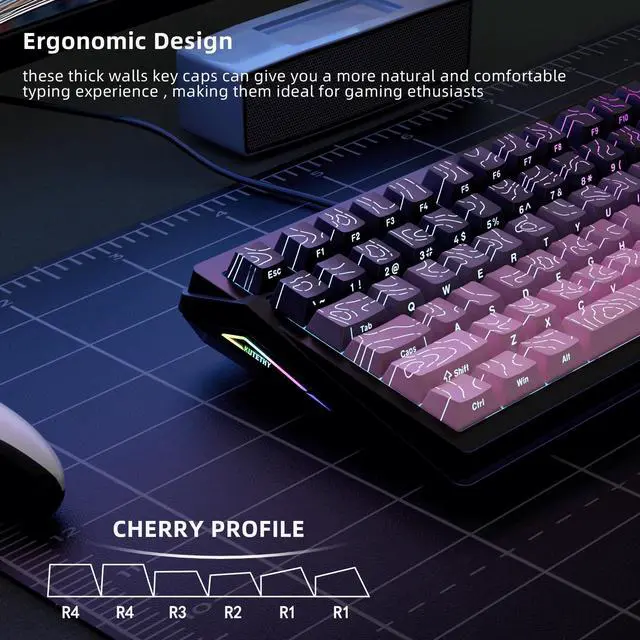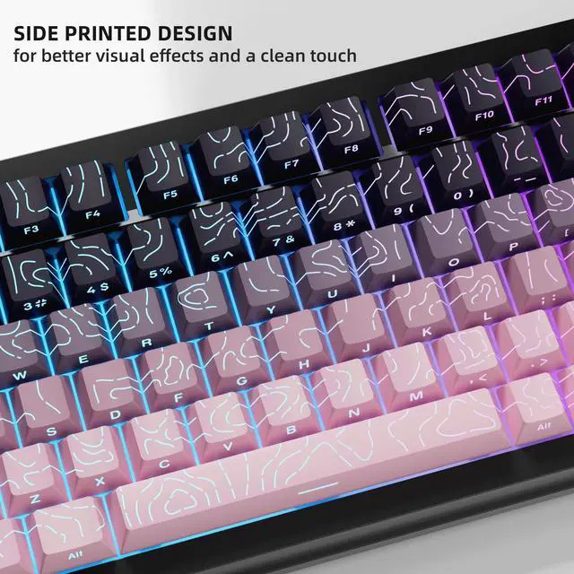 (Note: The side print keycap is more suitable for keyboards with LED facing south. ) ^^ [Durable two-color PBT keycaps] Two-color injection-molded characters are permanently molded into the keycaps, ensuring that the characters are clear and won't fade. Made of PBT material, wear-resistant, heat-resistant and oil-resistant. Ensure better user experience. ^^ [Ultra-Wide Compatibility]This 135 keys keycap set consists of 108 standard keys and 27 supplementary keys compatible with ANSI and ISO layout 61 64 68 84 87 96 98 104 ^^ [Cherry Profile Keycap Set] The keyboard keycaps designed with the classic cherry profile, it is ergonomic, you won't get tired even if you use it for a long time. ^^ [What You Get] Eco-friendly paper box package that including 135 keys keycap, not include keyboard. The keyboard is just for demo not included. Please check if the products inside the packaging is intact as soon as you receive this items. If needed, please leave a message anytime