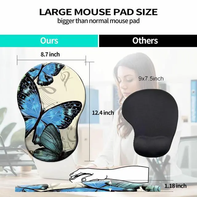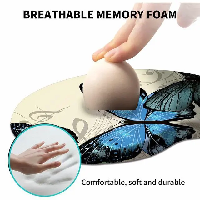 Mouse Pad with Wrist Support Gel Blue Butterfly Pattern Design Ergonomic Gaming Mousepad with Wrist Rest for Laptop Computer Home Office Working Mouse Mat + A Cute Coffee Pad