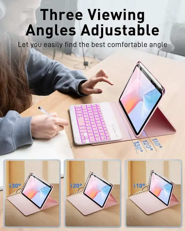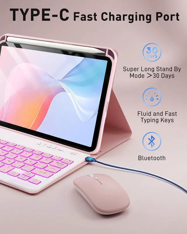 Mouse and magnetic detachable keyboardThe case for iPad Mini 7th & Mini 6th 8.3-inch comes with a rechargeable Bluetooth mouse and a magnetic detachable Bluetooth charging keyboard. This ultra-thin and lightweight magnetic keyboard firmly attaches to the case, helps the tablet stand upright, and turns it into a mini laptop in less than a second. You can move and adjust the position of the keyboard at a