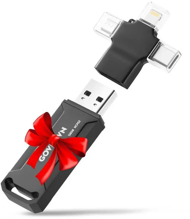 All Devices Simple & Stress-Free: The GOVNDVN photo stick is an iPhone backup flash drive that automatically backs up photos, videos, and contacts across iPhone, iPad, Android, Mac, and Windows PC. With Lightning, USB-C, USB 3.0, and Micro USB connectors, one USB drive protects all your devices fully offline with no cloud or subscription. Simply plug in the photo stick to start iPhone photo backup and secure photo and video storage effortlessly. ^^ Smart Auto Backup No Duplicates, TRUE 128GB